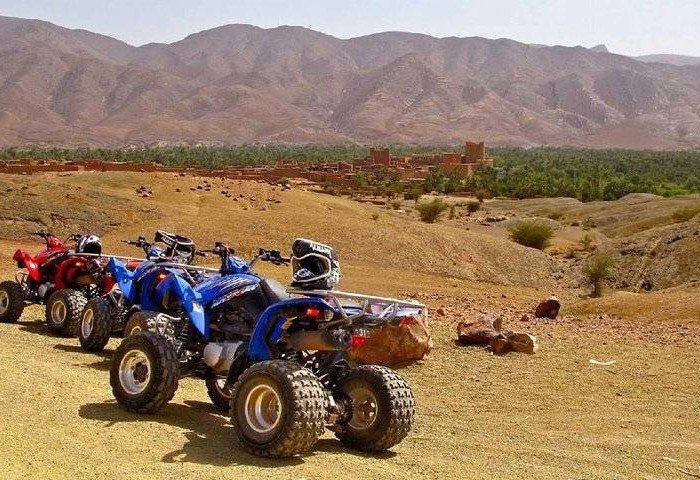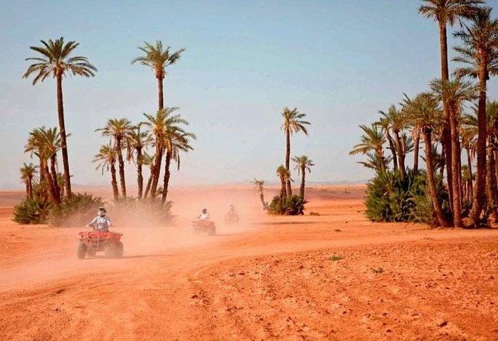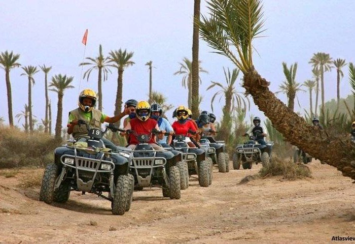 Partez à la découverte de la palmeraie de Marrakech lors d'une excursion en petit groupe en quad. Profitez d'une expérience unique en explorant la campagne et les villages authentiques situés en dehors de la ville. Rencontrez une famille locale dans une maison berbère pour une pause thé à la menthe et une collation, et découvrez leur mode de vie dans cette oasis de verdure. Admirez le paysage unique de palmiers et d'herbe lors de cette aventure de deux heures en quad.